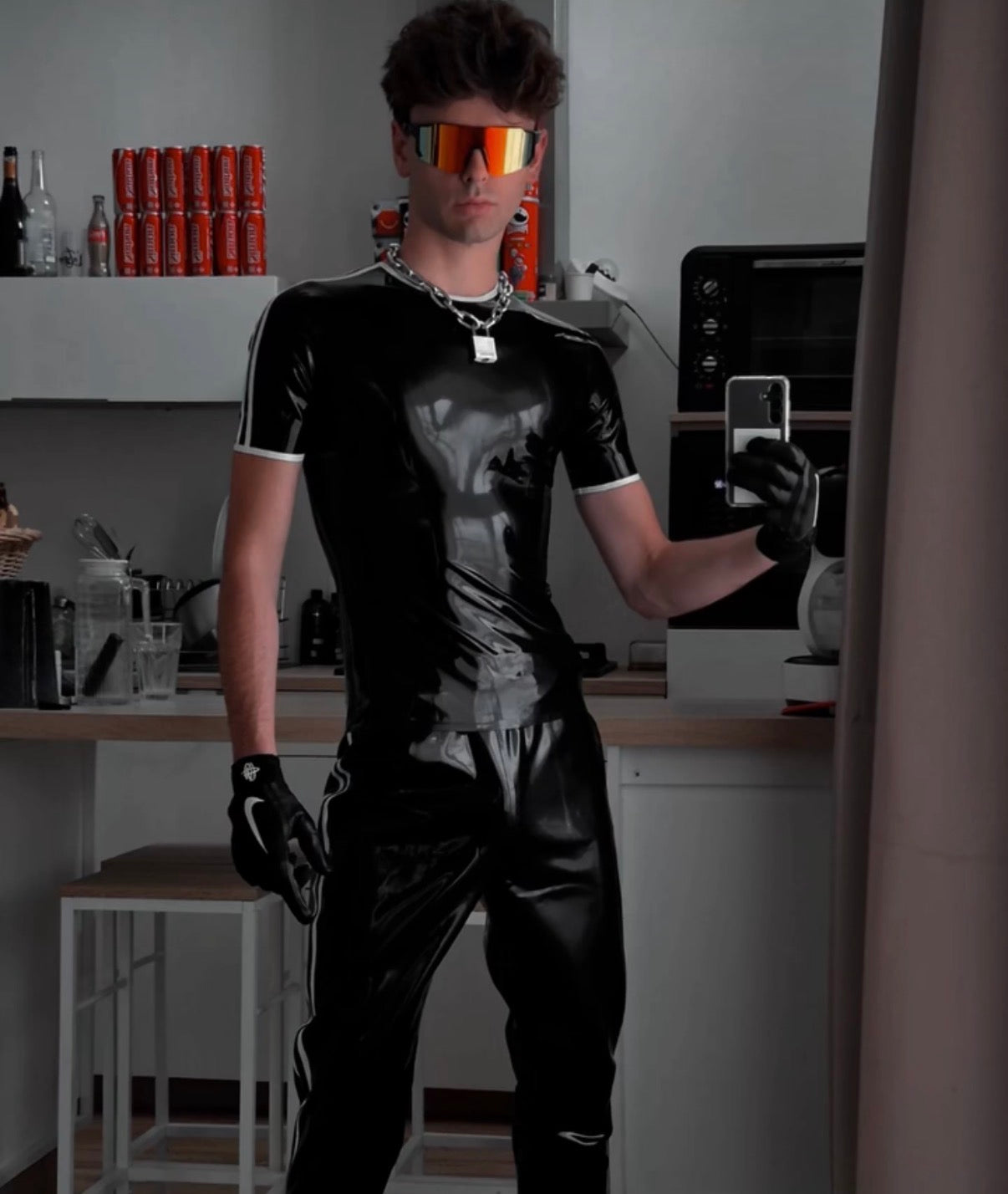 Featuring two white stripes along the sides, it echoes classic sportswear aesthetics while offering the unique benefits of latex material, including flexibility and a smooth finish.